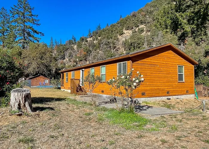 La Trinity River Retreat Villa está situada a una distancia de 2 km de Willow Creek y cuenta con una piscina privada con un patio.